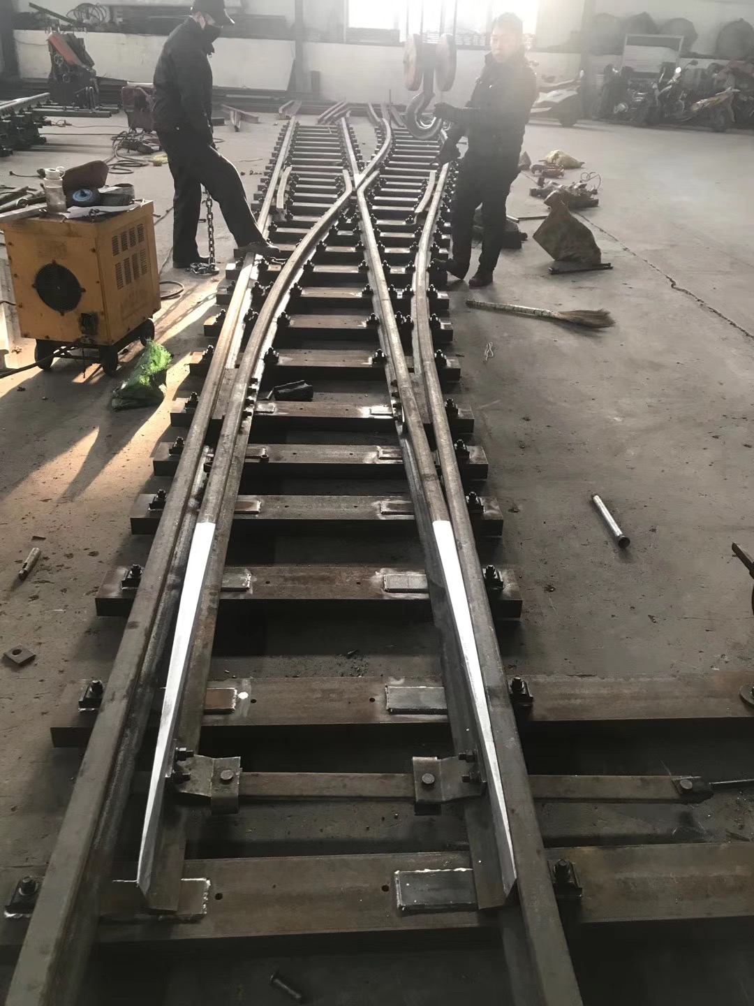 在上世紀六十年代林州人民(原林縣),自力更生,艱苦奮斗,在非常艱難困苦的歲月里,修造了舉世聞名的“人造天河”紅旗渠,被譽為世界八大奇跡之一,在新世紀的今天,林州兒女踏著前輩的足跡,發揚紅旗精神,繼續前進,為振興經濟中原崛起,在原來的基礎上不斷創新發展,使企業躍上了新的臺階。 我公司為上新產品整鑄道岔,斥巨資擴建廠房,引進設備,聘請人才,特聘(原煤炭部北京設計研究院)道岔專家胡工為我公司技術總監,特聘鐵道部寶雞橋梁廠鑄造專家王工為質檢總監,經過多方努力,無數次的試驗,整鑄道岔于2003年終于試制成功,并已批量生產投放市場,受到了各用戶的一致好評和青睞。 拼裝道岔是用螺拴和鉚釘連接在一塊的,使用后經礦車往來的軋壓和雨水的腐蝕,很容易出現螺帽脫落,鉚釘松動,造成機芯解體或損壞,而影響了正常的生產運輸和造成重大安全隱患,而整鑄道岔機芯是高溫一次澆鑄成型,經粹火,正火等多道工藝處理,其金相組織結構嚴密,抗拉抗沖擊性能極高。它是由多種元素組成的低合金剛,耐磨系數是普通拼裝機芯的4倍,從而大大降低了使用單位的生產成本,減少了更換、保修、保養等麻煩,整鑄道岔的優點再者就是承受能力大,運行速度快,使礦進的運輸量大幅度的提升、整鑄道岔的安全性能很好,因為它是一次性澆鑄成型的,在設計和生產過程咽喉部位已加高和加厚(俗稱道岔的有害空間),排除了車輪通過此段掉道的弊端,因此使礦車的速度大幅度提高,為使用單位多創了良好的經濟利益。